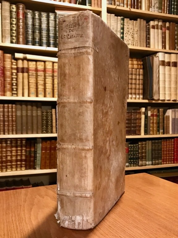 <span style="font-style: normal;">2 parti in 1 volume in-folio (cm. 33), legatura coeva in piena pergamena rigida (usure), titolo anticamente ms. su etichetta al dorso e sul taglio inferiore; pp. [70] 584, 322 [38] con frontespizio in rosso e nero con vignetta (salamandra), testo su due colonne; antica firma di proprietà al frontespizio e al foglio di guardia; fioriture sparse. La seconda parte riporta le </span><i>Decisiones Sacrae Rotae Romanae in tractatu de legitima</i>. Il giureconsulto forlivese autore di quest'opera era specializzato in questioni successorie. Cfr. Sapori 1902. Buon esemplare.
