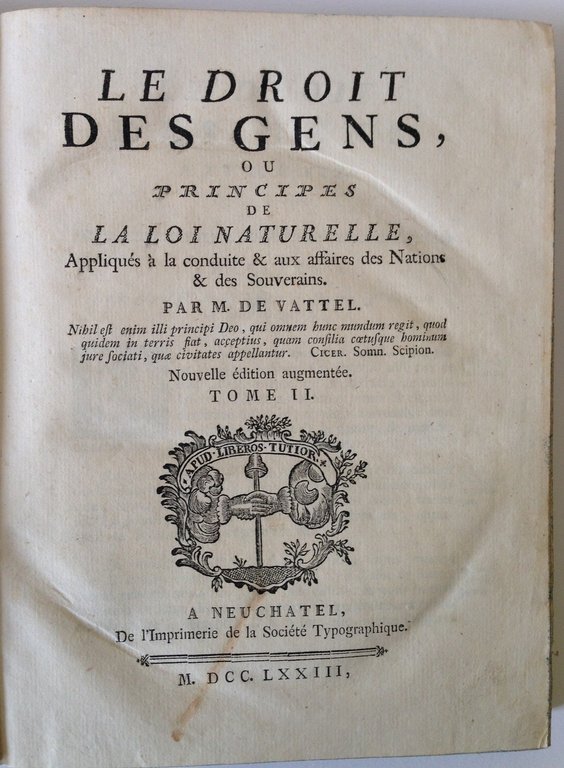 DE VATTEL LE DROIT DES GENS OU PRINCIPES DE LA LOI NATURELLE NEUCHATEL 1773