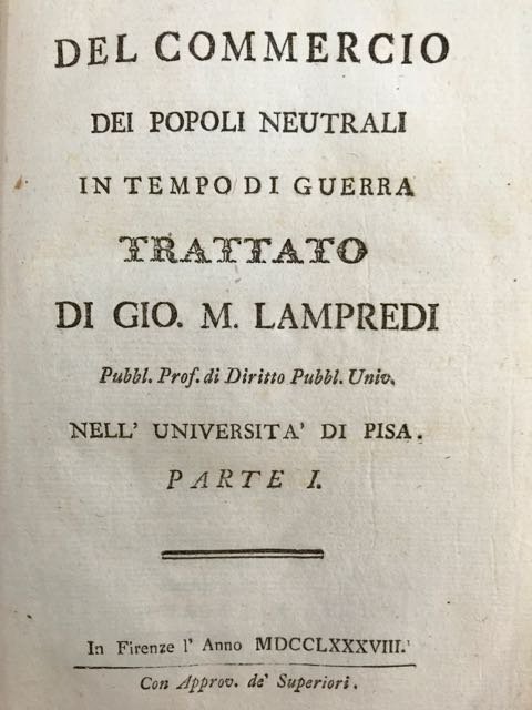 Del commercio dei popoli neutrali in tempo di guerra. Trattato. | Libri antichi e moderni | Lampredi Giovanni Maria.