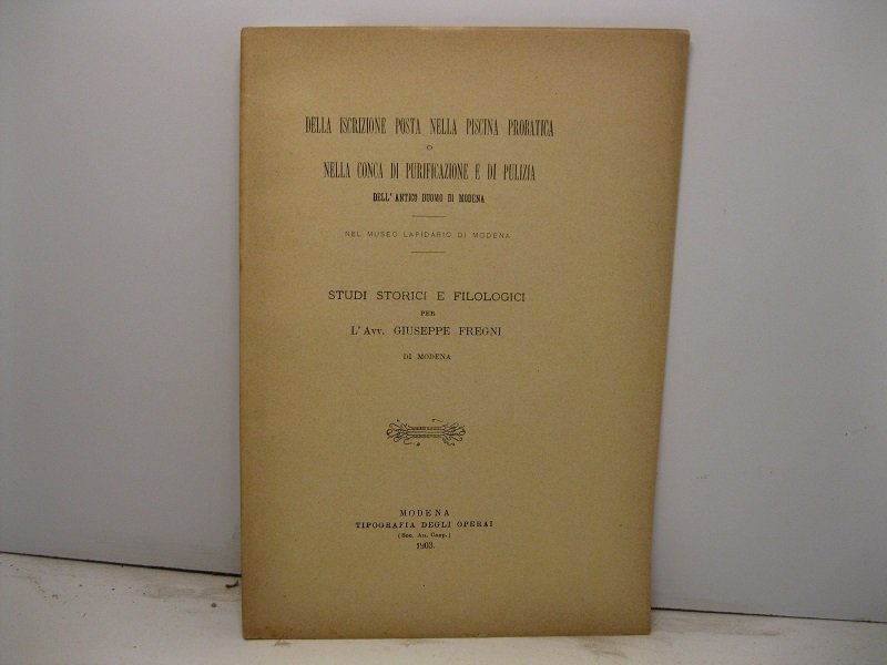 Della iscrizione posta nella piscina probatica o nella conca di purificazione e di pulizia dell'antico Duomo di Modena. Studi storici e filologici per l'Avv. Giuseppe Fregni | Libri antichi e moderni | Fregni Giuseppe