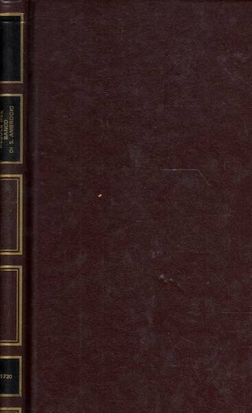 Delle leggi, contratti e governo del Banco di S. Ambrogio della ecc.ma città di Milano stabilita già li 2 aprile 1601 [.] ed ora date nuovamente in luce [.] Milano MDCCXXX (anastatica)