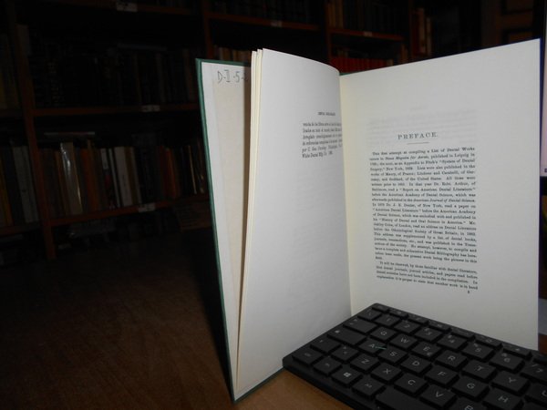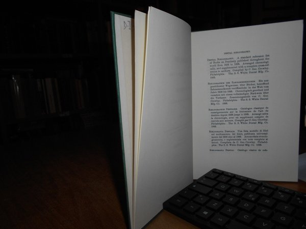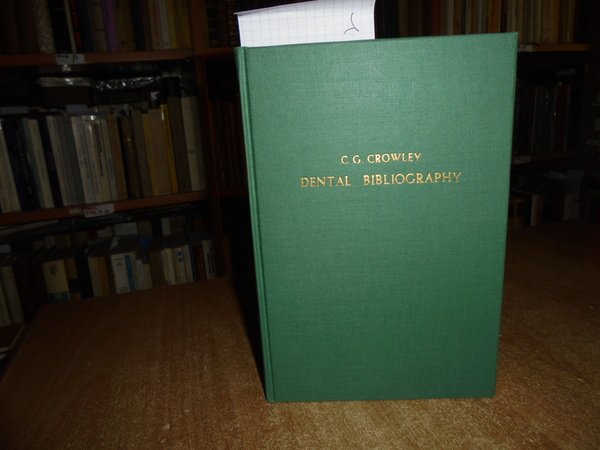 C. Geo. CROWLEY. Amsterdam, Reprint Liberac n.v. Publishers, 1968. Dental Bibliography: A Standard Referece List of Books on Dentistry Published Throughout The World from 1586 to 1885. In-8°, tela edit. verde con titoli in oro. 180 pp. Come nuovo. Uff. D - II - 5 - 2