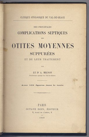 Des principales complications septiques del Otites moyennes suppurées et de leur traitement. | Libri antichi e moderni | Mignon, Alfred Henri Alexandre.