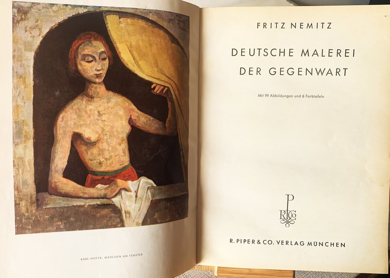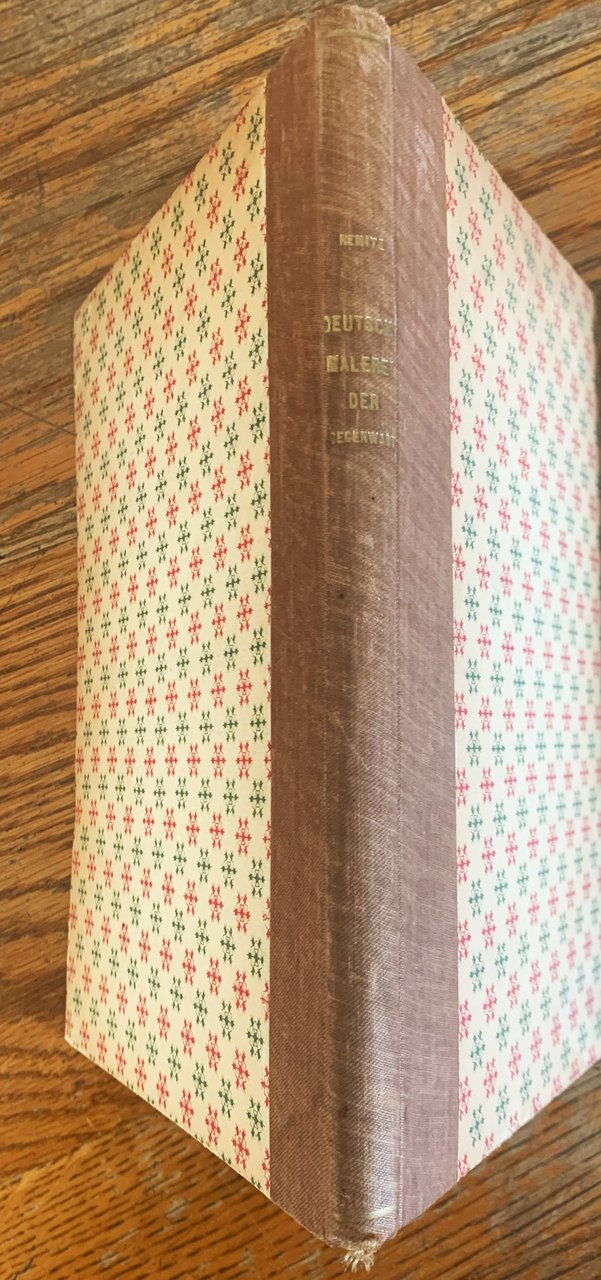 I ed. Testo in tedesco. Inhalt: Vorwort - Um die Jahrhundertwende - Das impressionistische Weltbild - Liebermann und Corinth - Cézanne - Vincent van Gogh - Edvard Munch - Wege zum neuen Stil - Der Futurismus - Franz Marc - Wassily Kandinsky - Paul Klee - Konstruktivisten und abstrakte Maler - Max Beckmann - Leo von König - Karl Hofer - Oskar Kokoschka - Die Maler der "Brücke" - Ernst Ludwig Kirchner - Karl Schmidt-Rottluff - Erich Heckel und Otto Mueller - Max Pechstein - Emil Nolde Norddeutsche Tallente - Maler der Sachlichkeit - Nachimpressionisten - Surrealisten - Xaver Fuhr des Südens - Hans Purrmann und Werner Gilles - Zwischen heute und morgen - Register. In-8, pp. (2)+132, rilegatura in mezza tela marrone con i piatti in cartone ricoperti con carta ornata in rosso e verde su fondo chiaro (titoli in oro al dorso) e segnalibro in raso grigio-argento. Con 99 illustrazioni in b/n e 6 a colori (Mit 99 Abbildungen und 6 Farbtafeln). Stato buono (lieve stato d'uso della copertina: piatti leggermente bruniti, in particolare ai margini - leggera consunzione dei margini - pagine leggermente ingiallite - la parte del segnalibro che è rimasta fuori dal volume si è brunita)