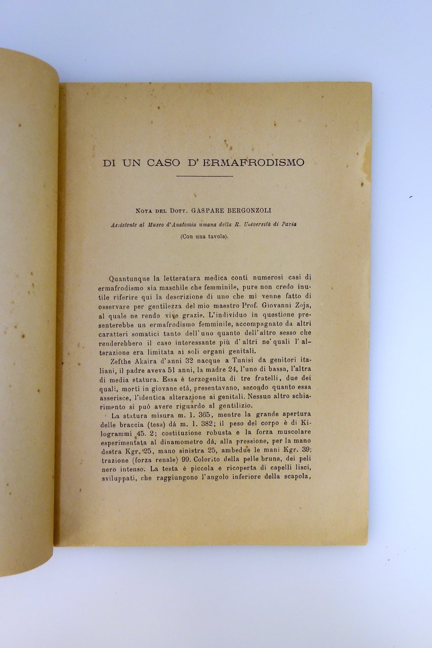 Di un Caso di Ermafroditismo Gaspare Bergonzoli Pavia 1893 con Una Tavola Raro | Libri antichi e moderni |
