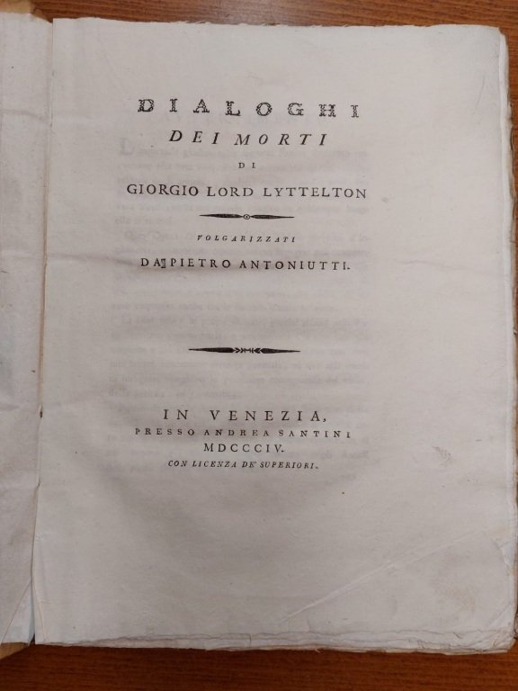 Dialoghi dei morti. Volgarizzati da Pietro Antoniutti. | Libri antichi e moderni | Lyttelton George.