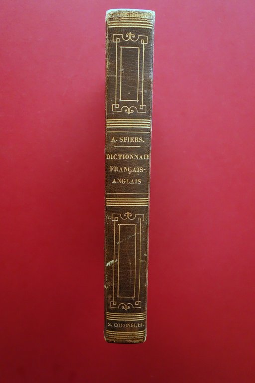 A. Spiers, Dictionnaire general Francais - Anglais [.] par A. Spiers Baudry, Libraire Européenne, Paris 1851; cm 24x16; pp. [8]-620; legatura d'epoca in piena pelle con titolo e fregi impressi in oro al dorso; risguardi marmorizzati. Condizioni di conservazione Buone condizioni con tracce d'uso e leggeri segni del tempo; coperta con alcuni lievi graffietti e spellature per lo più ai margini dei piatti, alle cuffie e alle cerniere; interni buoni con leggero foxing. SETT40.L26311 N