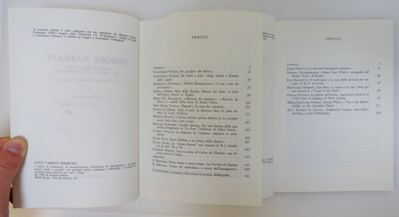 DIMORE NARRATE SPAZIO E IMMAGINARIO NEL ROMANZO CONTEMPORANEO BULZONI 1988 2 VOL