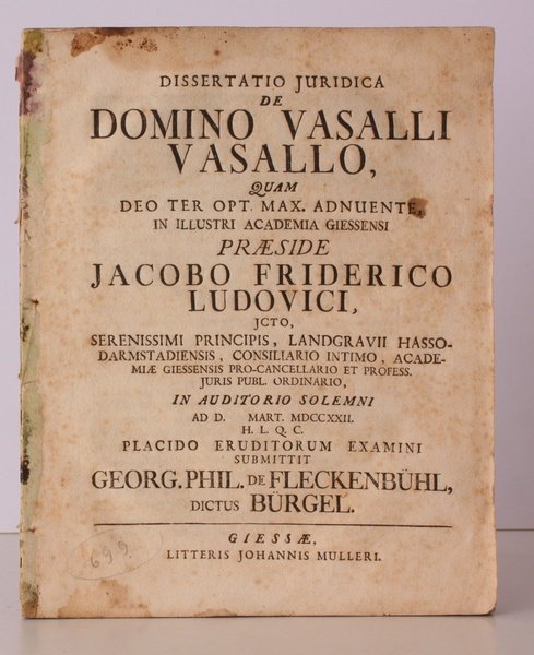 Dissertatio Juridica de Domino Vasalli Vasallo quam deo ter opt. max. adnuente in illustri Academia Giessensi. CRISP, CLEAN COPY OF THE ORIGINAL EDITION | Libri antichi e moderni | Ludovici Jakob Friedrich