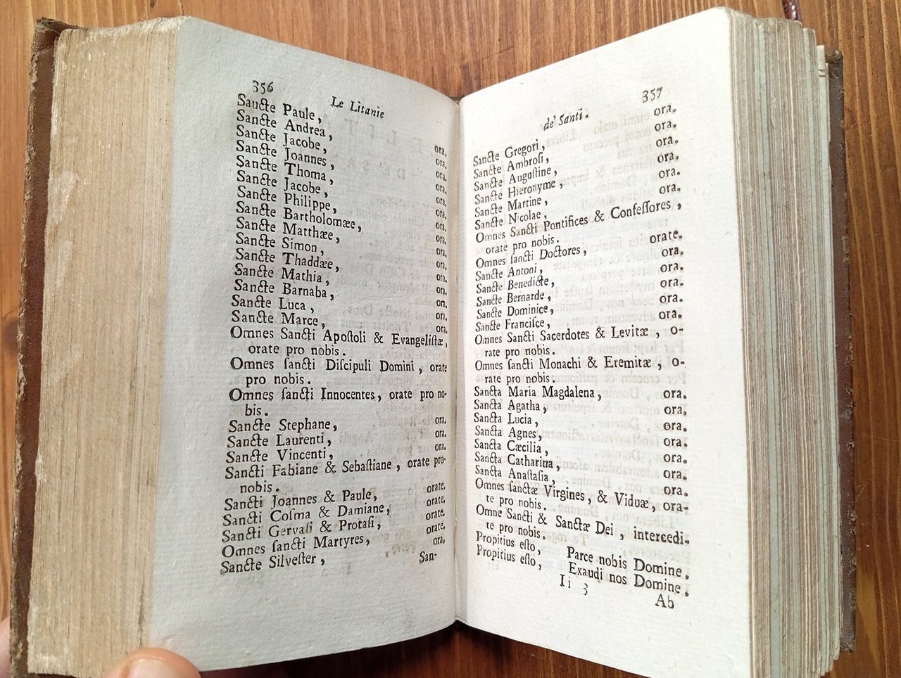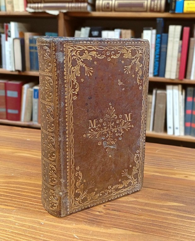 Volume tascabile (9 x 14,5 cm), rilegatura in piena pelle con belle decorazioni in oro ai piatti e al dorso, tagli dipinti in oro, xxi-556 pagine; fregio calcografico inquadrato al frontespizio. Testo in italiano e latino stampato su due colonne. Una macchia all'angolo superiore del retro che solo marginalmente tocca l'interno delle ultime carte; per il resto l'esemplare risulta piuttosto ben conservato nella sua paginazione candida e compatta, legature salde.