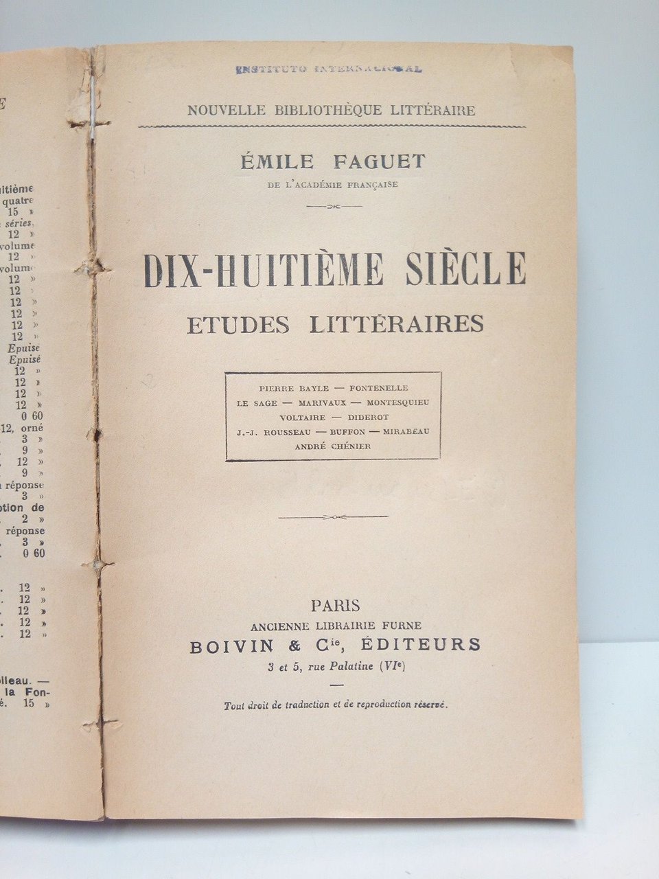 Dix-huitième siècle: Etudes littéraires (Pierre Bayle, Fontenelle, Le Sage, Marivaux, Montesquieu, Voltaire, Diderot, J. J. Rouseau, Buffon, Miraveau, André Chénier) | Libri antichi e moderni | Faguet, Emile