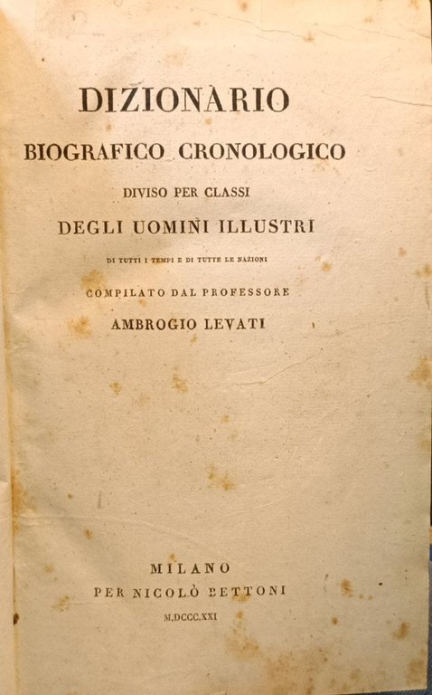 Dizionario biografico cronologico diviso per classi degli uomini illustri di tutti i tempi e di tutte le nazioni | Libri antichi e moderni | Levati Ambrogio