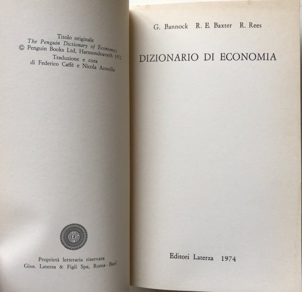 DIZIONARIO DI ECONOMIA | Libri antichi e moderni | Graham Bannock, Ron E. Baxter, Ray Rees