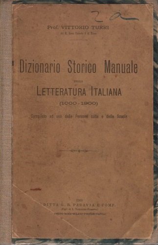 DIZIONARIO STORICO MANUALE DELLA LETTERATURA ITALIANA (1000-1900) | Libri antichi e moderni | Turri Vittorio