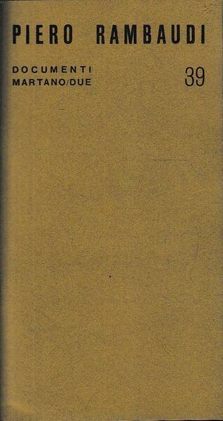 Documenti Martano/Due 39 - Piero Rambaudi | Libri antichi e moderni | Russoli, Franco - Battisti, Eugenio - Pistoi, Mila - Rosso, Fran, Co (Testi) - Rambaudi, Piero (Note Tecniche)
