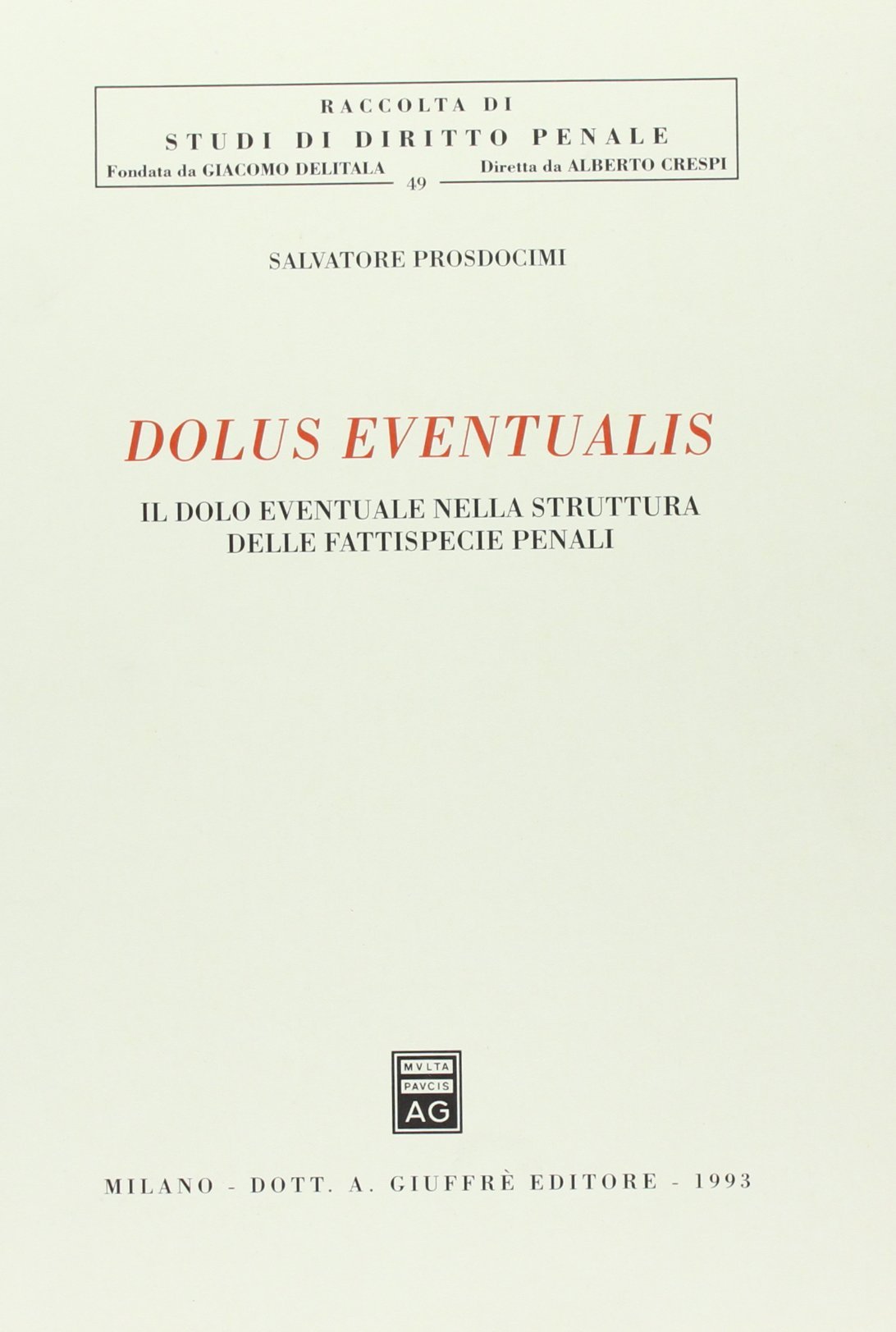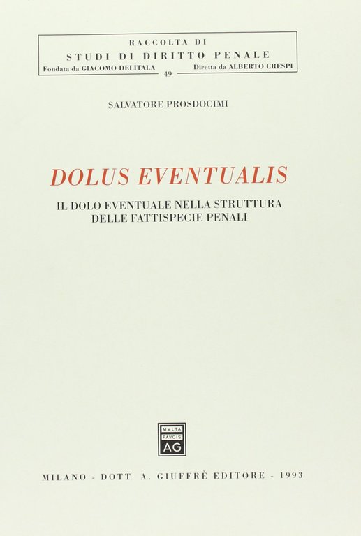 Dolus eventualis. Il dolo eventuale nella struttura delle fattispecie penali | Libri antichi e moderni | Prosdocimi Salvatore, ,Prosdocimi Salvatore