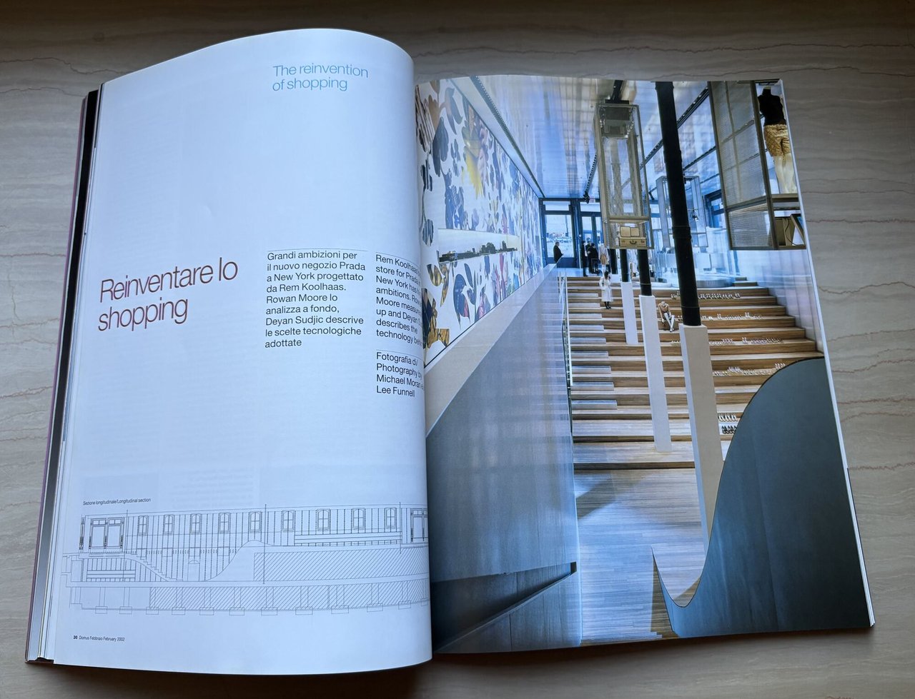 • Grant Mudford, periodici, mensili, arte, fotografia, Lee Funnell, architettura, Piano di riqualificazione aree ex industriali Sesto San Giova, Negozio Prada a New York Rem Koolhaas, architettura degli interni, Riedizioni Vitra Jean Prouvé, design, grafica, Giuseppe Basile, domus 845 Febbraio/February 2002, Deyan Sudjic