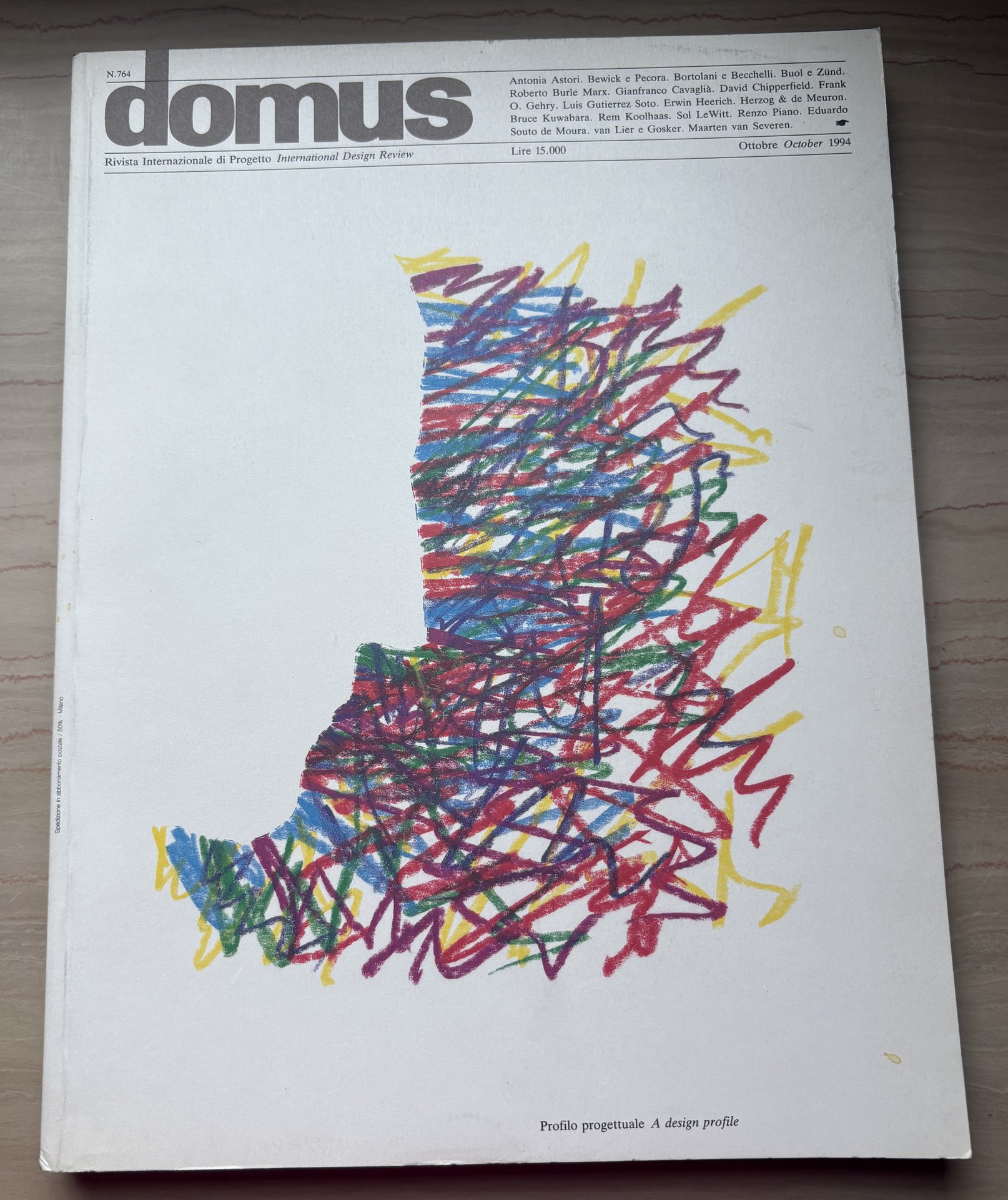 I ed. della rivista mensile: ottobre 1994 numero 764 (Via Achille Grandi 5/7, Rozzano - Milano). Testi in italiano/inglese. IV/(98)+XVIII Schede edilizia/Building File+156=272/brossura patinata con tagli editoriali (La copertina/The Cover: Dare il profilo a una personalità/Profiling a personality. Design: Alan Fletcher). Illustrazioni in nero, b/n e a colori. Grafica/Graphics: Giuseppe Basile. Stato buono (leggera usura della copertina ai margini - volume nel complesso leggermente brunto).
