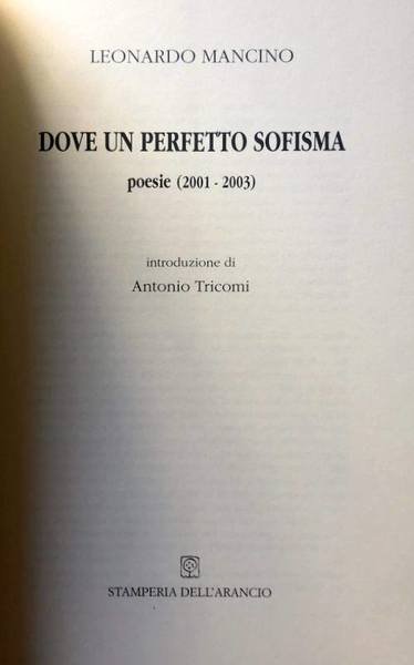 DOVE UN PERFETTO SOFISMA. POESIE (2001-2003) | Libri antichi e moderni | Leonardo Mancino