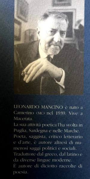 Leonardo Mancino (Camerino, 1939-2010), fu un poeta e saggista marchigiano, ma vissuto per quasi 30 anni in Terra di Bari dove contribuì largamente alla nascita di una generazione di scrittori attratti dalla poesia d’avanguardia e dall'impegno civile; nello stesso arco di tempo egli s’impegnò anche come dirigente scolastico, uomo politico e direttore di una gloriosa collana letteraria, per Lacaita di Manduria, che riuscì ad attrarre grandissimi nomi del panorama nazionale. A parlarne col curatore del ciclo, Daniele Maria Pegorari, che di Mancino è stato uno degli ultimi amici baresi, è Luisa Rossi, classe 1982, laureata a Bari in Informazione e Sistemi Editoriali e autrice della prima monografia italiana dedicata al poeta, dal titolo Leonardo Mancino. Parole di una ricerca umana, edita dalla FaLvision di Bari nel 2013. Qui si analizzano le oltre 15 raccolte del poeta, facendo emergere un ritratto lucido ed appassionato che fa centro sul concetto di utopia reale (come si intitolava una sua auto-antologia del 1994), cuore della poetica e della sua pedagogia civile.
