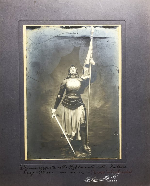 La prima riproduce la statua nello Stabilimento dello Scultore Luigi Guacci in Lecce (lavoro in cartapesta)