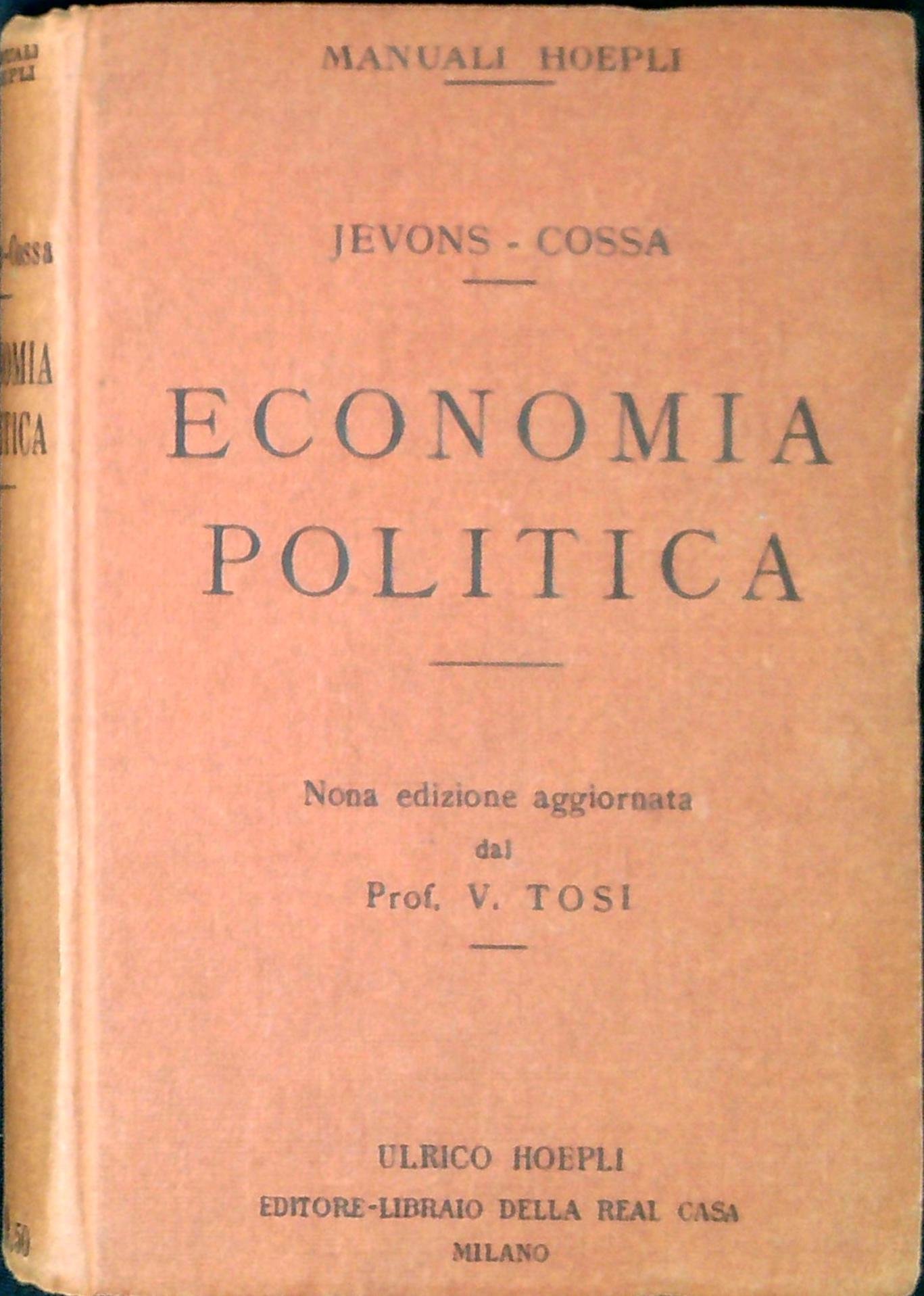 G. Stanley Jevons ; tradotta per cura del prof. Luigi Cossa ; riveduta ed aggiornata dal prof. Vincenzo Tosi Economia politica. Milano, U. Hoepli 1926, XXIV, 278 p. ; 15 cm. Nona edizione aggiornata (48681)