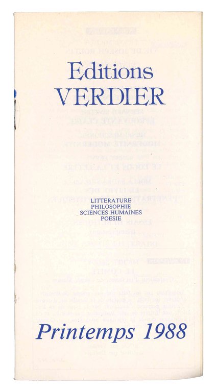 Editions Verdier. Litterature, philosophie, sciences humaines, poesie. Printemps 1988.