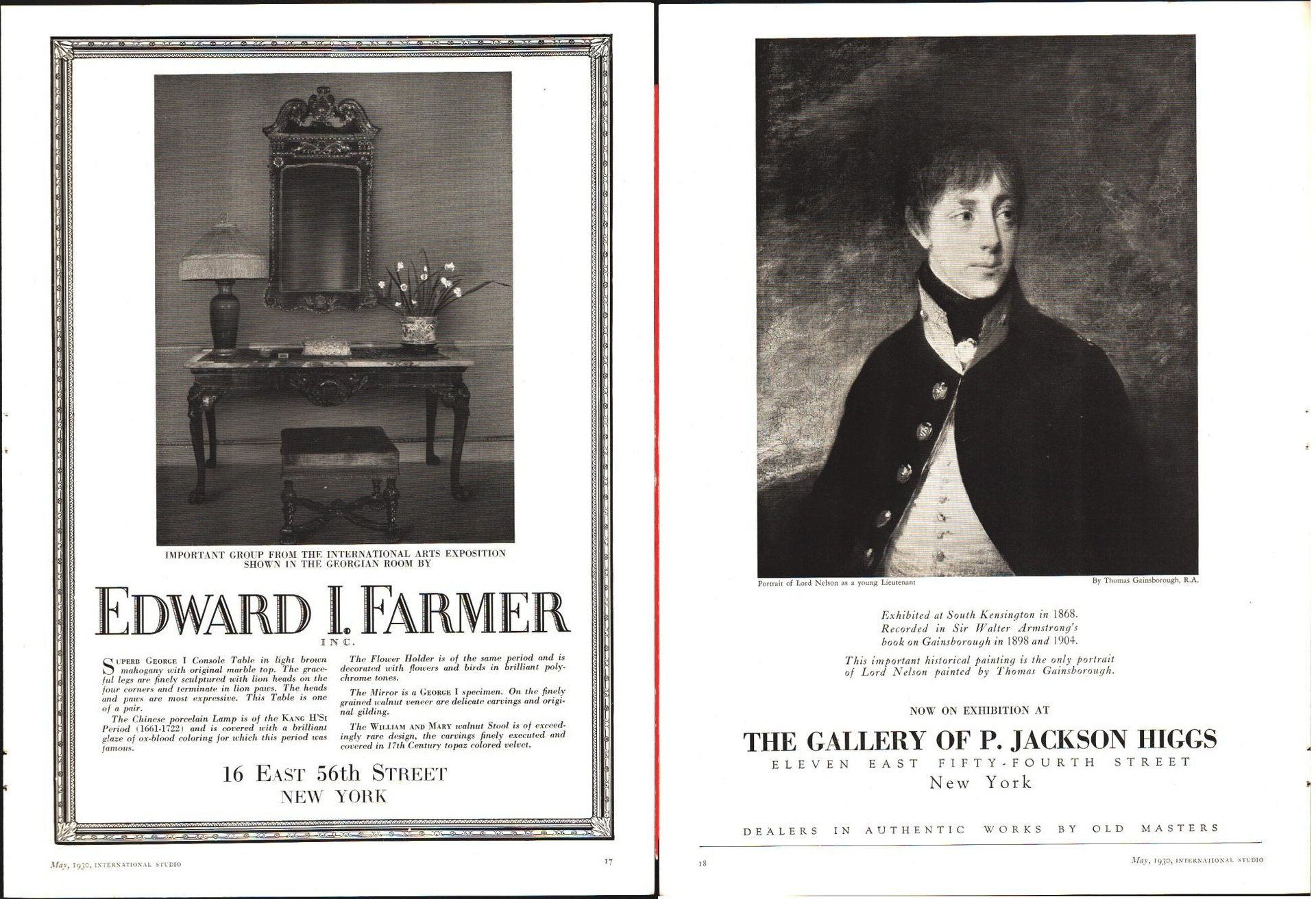 Edward I. Farmer / The Gallery of P. Jackson Higgs. Pubblicità 1930 fronte/retro