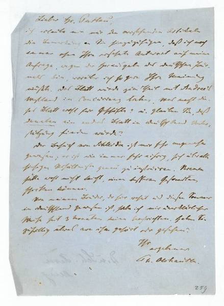 1 S. 8vo. An einen Herrn Pastau: "Ich erlaube mir nur den vorstehenden Artikeln die Bemerkung an Sie hinzuzufügen, daß ich noch immer ohne Ihre ersehnte Antwort auf meine Anfrage wegen der Herausgabe des deutschen Journals bin, worüber ich so gern Ihre Meinung wüßte. Das Blatt würde zum Theil mit Andree's Westland in Concurrenz treten. Was macht dieses Blatt wohl für Geschäfte? u. glauben Sie, daß daneben ein andres Blatt in Deutschland Unterstützung finden würde [.]".