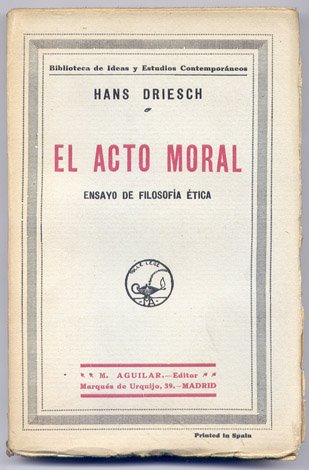 El Acto Moral. Ensayo de Filosofía Ética. Versión española de Rafael Cansinos Assens. | Libri antichi e moderni | Driesch, Hans.