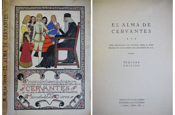 El alma de Cervantes. Pensamientos, máximas y consejos entresacados de las obras de Cervantes al alcance de los niños. Prólogo de Francisco Rodriguez Marín. | Libri antichi e moderni | Cueva, Manuel De La.