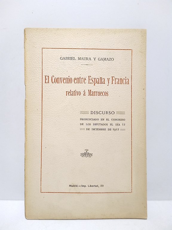 El convenio entre España y Francia relativo á Marruecos. (Discurso en el Congreso de los Diputados, el día 12 de Diciembre de 1912) | Libri antichi e moderni | Maura Y Gamazo, Gabriel