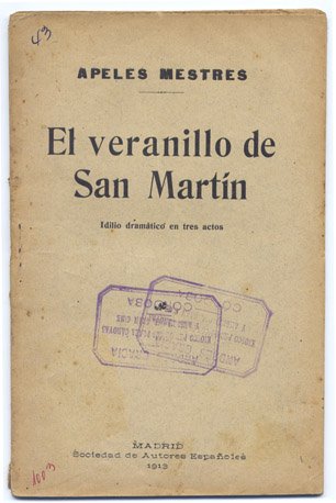 El veranillo de San Martín. Idilio romántico en tres actos. Versión castellana de Román de Saavedra. | Libri antichi e moderni | Mestres, Apeles.