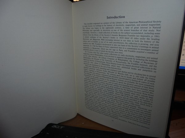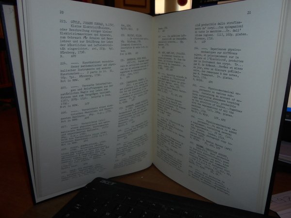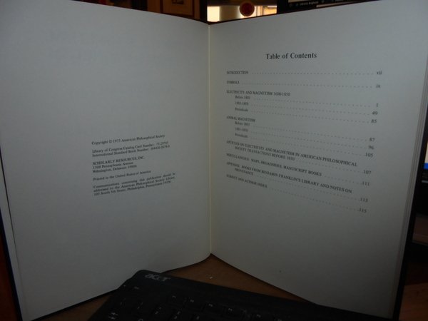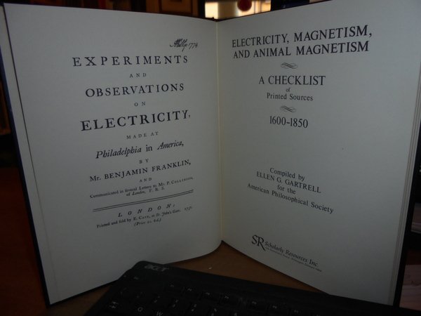ELLEN G. GARTRELL. Pennsylvania, SR Scholarly Resources Inc., 1975. Electricity, Magnetism, and Animal Magnetism a Checklist of printed Sources 1600 - 1850. In-8* grande, tela bleu edit. con titolo in oro al dorso. ix, 125 pp. con alcune tavole nel testo. In ottimo stato di conservazione. Uff. E - II - 5