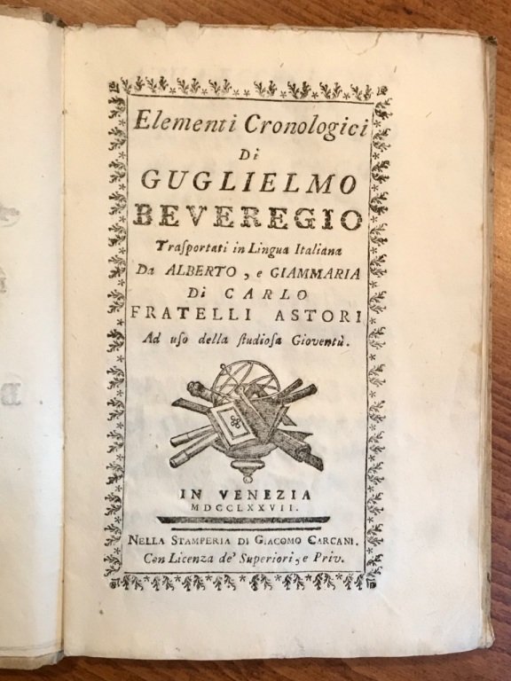 Elementi cronologici di Guglielmo Beveregio trasportati in lingua italiana da Alberto e Giammaria di Carlo fratelli Astori. | Libri antichi e moderni | Beveridge William.
