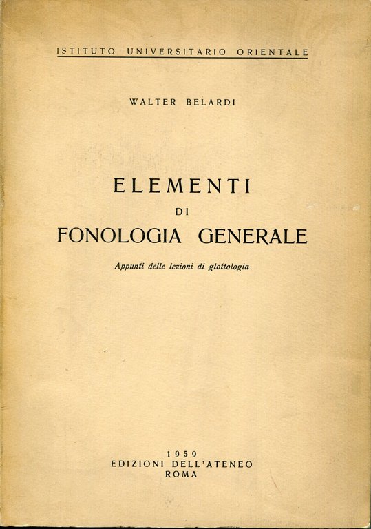 Elementi di fonologia generale : appunti delle lezioni di glottologia | Libri antichi e moderni | Belardi, Walter, ,Belardi, Walter