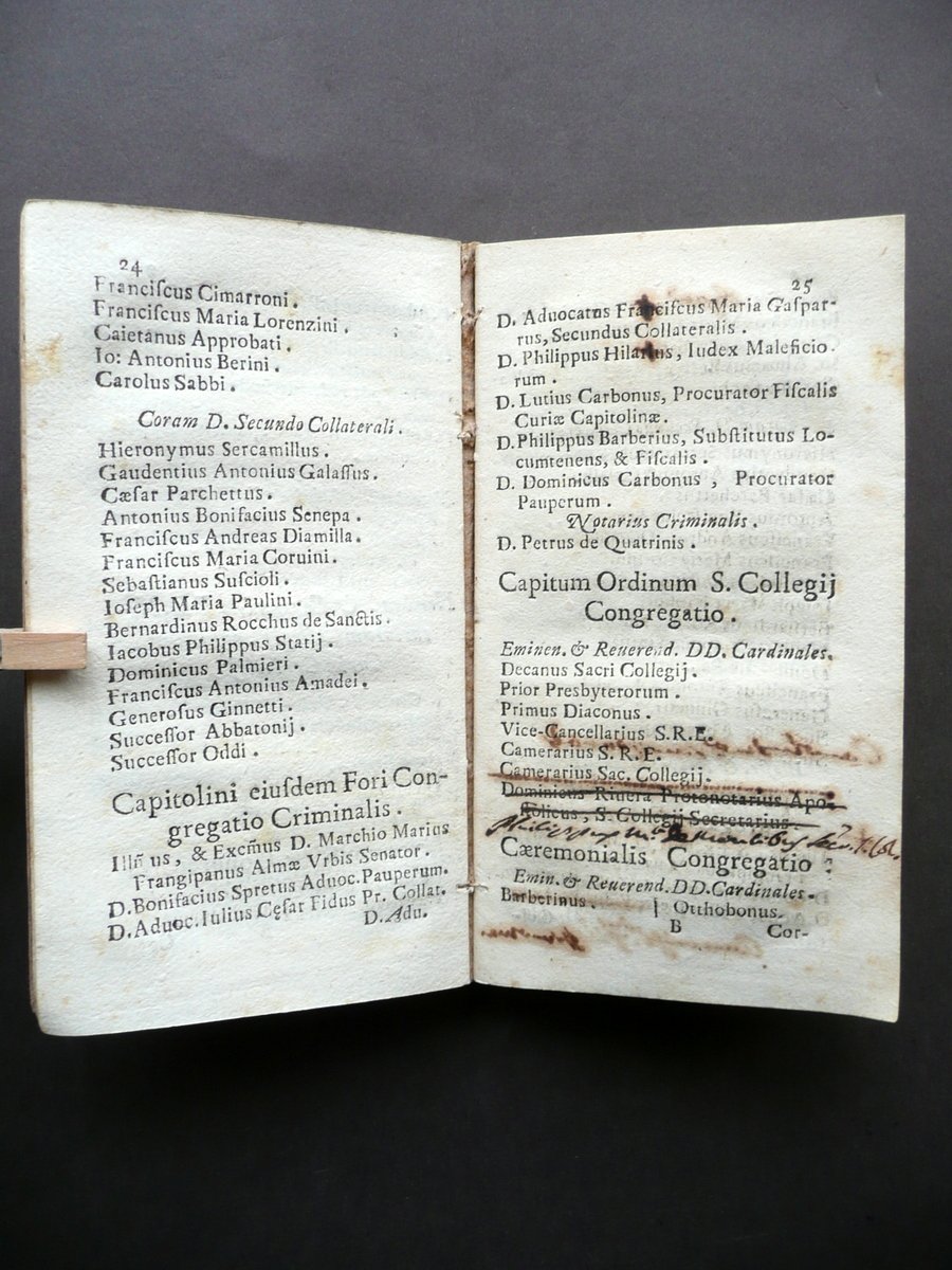 Elenchus Congregationim Tribunalium Collegiorum Almae Urbis Romae 1730 Raro