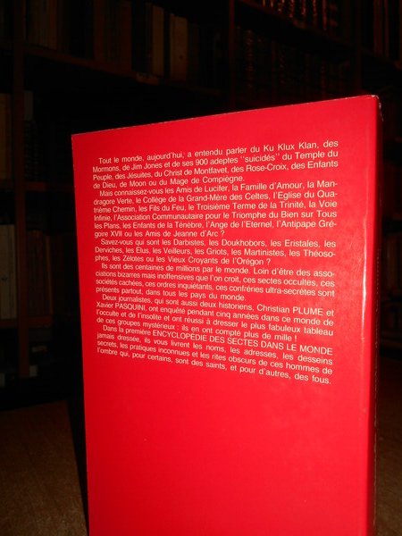 Christian Plume - Xavier Pasquini. France, Henri Veyrier, 1984. Encyclopédie des sectes dans le monde. In-8° piccolo, cartoncino edit. 489 pp. con alcune illustrazioni in bianco e nero nel testo. Ottimo esemplare. Uff. stanzetta TV. mob. destro