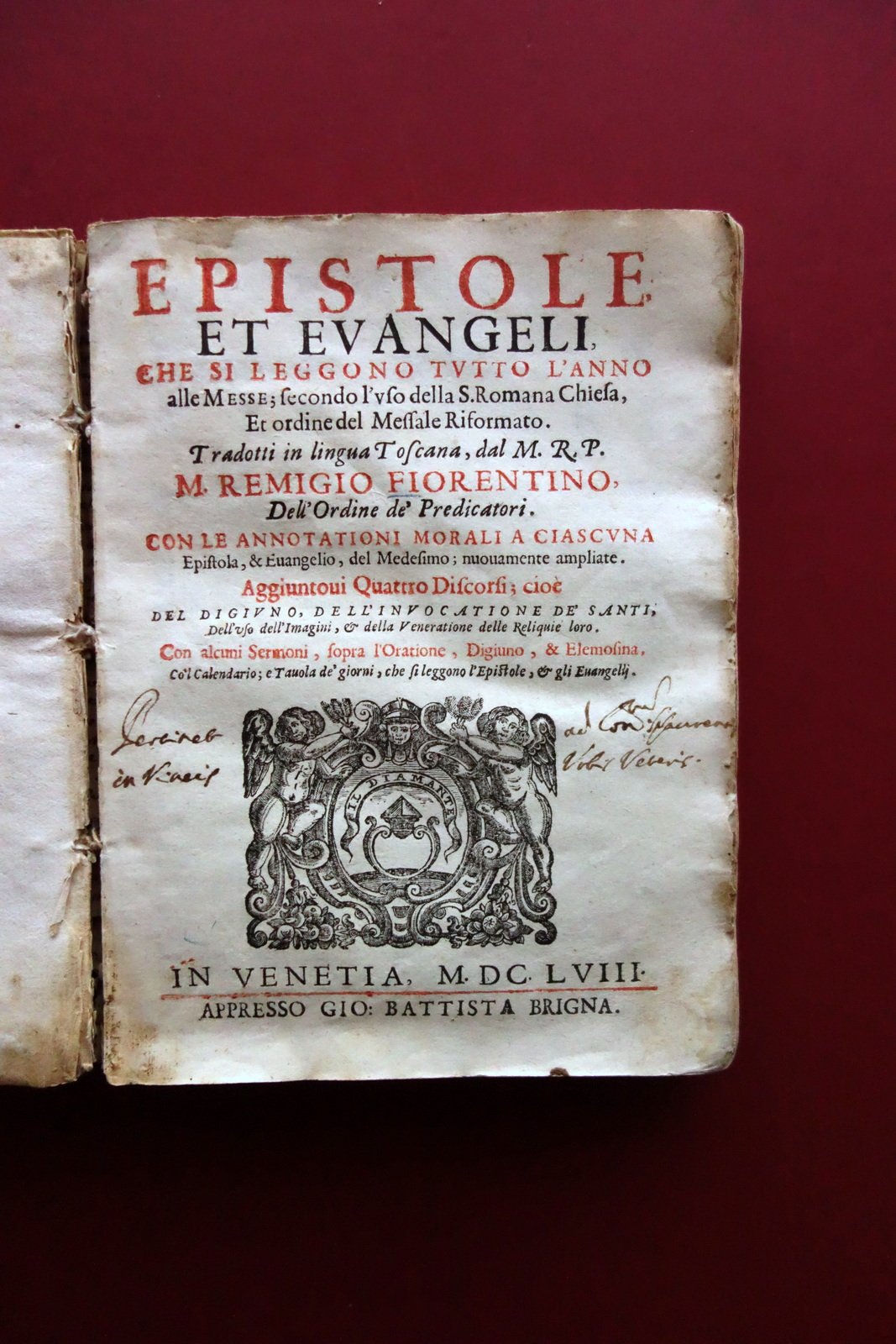 Epistole Evangeli che si Leggono Tutto L'Anno R. Fiorentino Brigna Venezia 1658