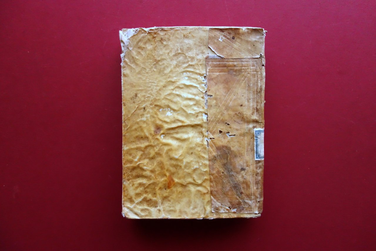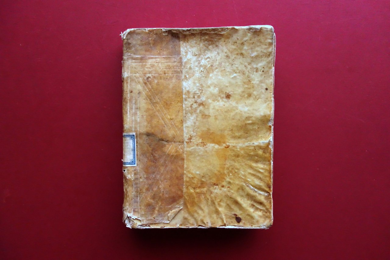 Nel complesso in buone condizioni con tracce d'uso e del tempo; coperta con alcune irergolarità, piccole macchiette e aloni, alcune piccole per lo più marginali mancanze al rivestimento in pergamena; piatto post. con alcuni piccoli danni da tarlo non più attivo. Vecchia etichetta applicata al dorso. Interni in buono stato con minimo foxing e fisiologici lievi accenni di ingiallimento dovuti all'età; carta bianca e frontespizio con vecchie annotazioni d'epoca; pp. 1-2 con taglietto di alcuni cm che non comporta perdite di testo e un piccolo marginale restauro mediante rinforzo cartaceo. Errori di impaginazione da pagina 144 a pagina 161, che non rendono lineare la prosecuzione del testo; le pagine sono state rilegate nell'ordine che segue: 144-149-150-151-152-145-146-147-148-157-158-159-160-153-154-155-156-161. Esemplare completo di tutte le pagine. Ultima pagina applicata alla terza di copertina.