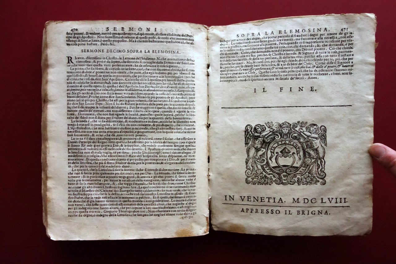 Appresso Gio. Battista Brigna, Venetia 1658; cm 22x17; 1 c. b.; pp. [24]-471, con numerose belle incisioni xilografiche nel t.; all'ultima pagina e al frontespizio bella marca tip. xilografica (vedi foto). Legatura d'epoca in piena pergamena con titolo annotato a mano al dorso.