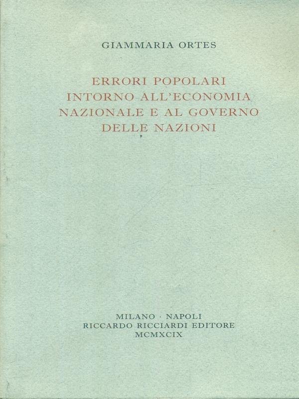 Errori popolari intorno all'economia nazionale e al governo delle nazioni | Libri antichi e moderni | Ortes, Giammaria