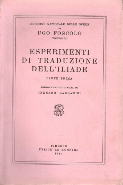 Esperimenti di traduzione dell'Iliade. Parte prima | Libri antichi e moderni | Ugo Foscolo
