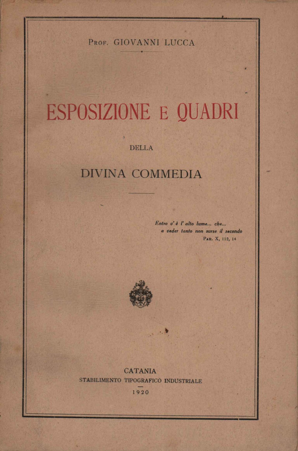 Esposizione e quadri della Divina Commedia | Libri antichi e moderni | Prof. Giovanni Lucca