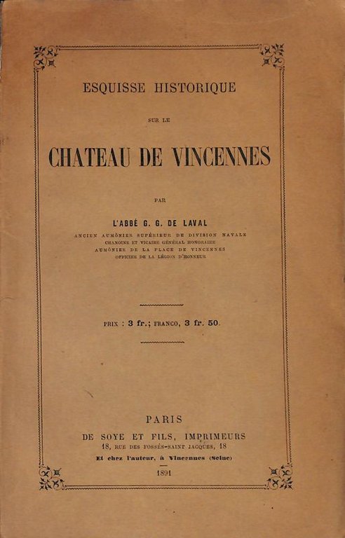 Esquisse historique sur le Chateau de Vincennes | Libri antichi e moderni | De Laval G. G.