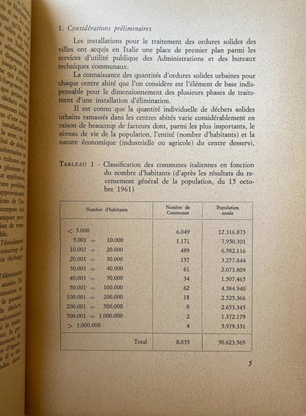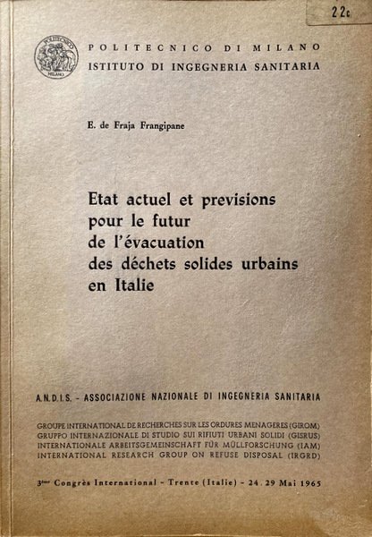 Titolo originale: Stato attuale e previsioni per il futuro dello smaltimento dei rifiuti solidi urbani in Italia; Present condition and forecasts for the future of refuses disposal in Italy.