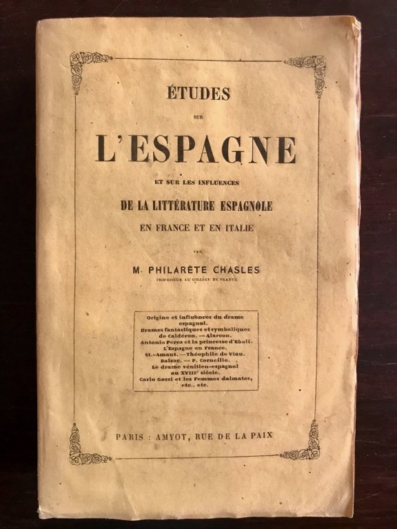 Études sur l'espagne et sur les influences de la Littérature espagnole en France et en Italie. | Libri antichi e moderni | Chasles Philarète.
