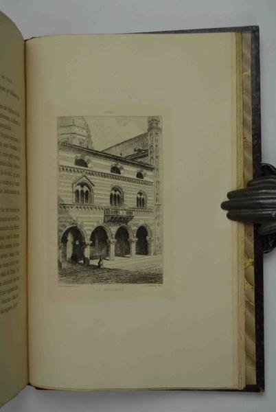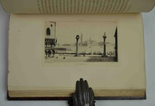 Cm. 25, pp. viii, 317 (3). Con 15 belle tavole fuori testo incise all'acquaforte da Léon Gaucherel. Ottima legatura coeva in mezzo marocchino rosso, dorso a nervi con titoli in oro. Bell'esemplare, ad ampi margini. Impresso su "Papier de Hollande" in soli 500 esemplari. La parte iconografica consta di raffinate vedute e scorci di monumenti di Chambery (1), Torino (1), Milano (1), Venezia (7), Padova (2), Verona (2) e Como (2). Cfr. Olschki (389) e Bénézit il quale, parlando di L. Gaucharel, cita espressamente le incisioni eseguite per questo volume.