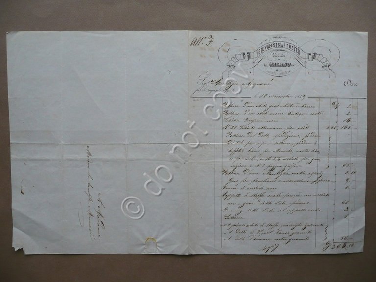 Fattura Giovanna Preyer Modista Milano Contrada Larga 1859 Abiti Abbigliamento