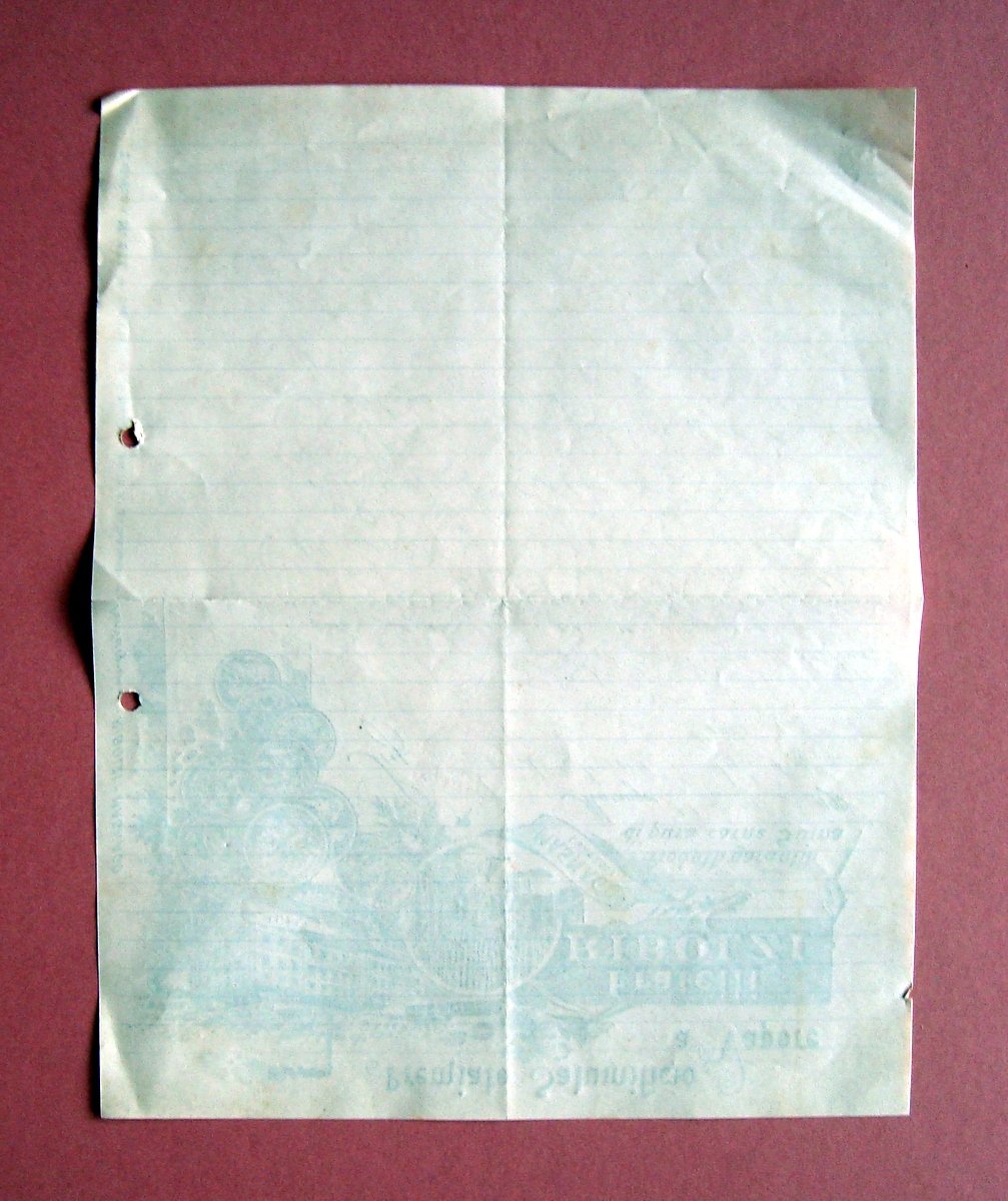 Fattura, Premiato Salumificio a Vapore Fratelli Ribolzi Prodotti garantiti di pura carne suina Masnago (Varese) 1902; fattura d'epoca a stampa con bella grafica; sezioni bianche compilate manualmente. Cm 27,5x22. Condizioni di conservazione Esemplare ben conservato con tracce d'uso, piega di conservazione con taglio di circa 3 cm, angolo inf. con accenno di pieghetta; fori laterali per archiviazione (vedi foto) Esemplare con bella grafica. Molto bella SC03.D19035 blu